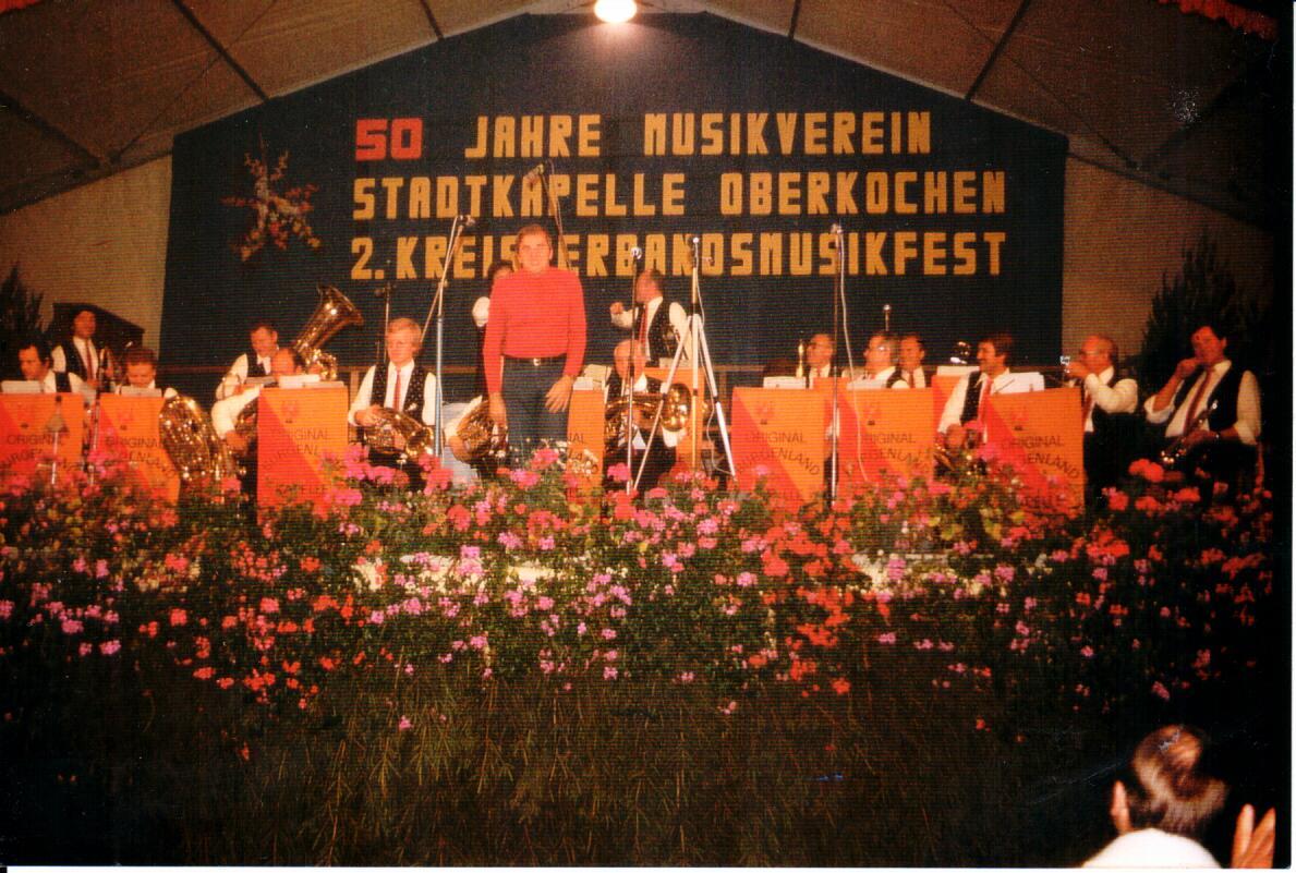 1977 kann der Verein sein 50-jähriges Bestehen feiern. Anlässlich dieses Jubiläums findet das Kreismusikfest mit Wertungsspiel und großem Umzug in Oberkochen statt. Die Stadtkapelle stellt ihre neuen Uniformen der Bevölkerung vor. Im Oktober wird Hans-Jürgen Kresse 1. Vorsitzender und damit Nachfolger von Robert Wolff, der zum Ehrenvorsitzenden ernannt wird.