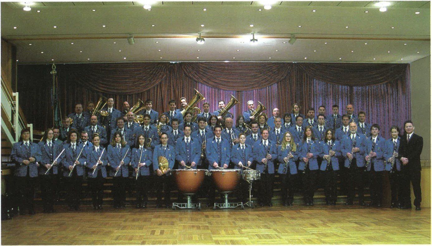 2001 steht schon ganz im Zeichen für das bevorstehende Jubiläum. Der Ausschuss und die aktiven Musiker haben sich für eine neue Uniform entschieden. Bei der Auswahl der Farben blau/gelb hat man sich als „Stadtkapelle" zum Zeichen der Solidarität und Verbundenheit bewusst an den Farben des Stadtwappens der Stadt Oberkochen orientiert.